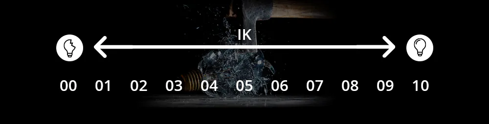 De IK waarde staat voor de slagvastheid en bescherming tegen vandalisme. Dit wordt uitgedrukt in combinatie met 2 cijfers (IK00 - IK10). Producten met IK00 zijn niet beschermd tegen weerstand, terwijl producten met IK10 weerstand bieden tegen schokken van 20 Joule en tevens vandaalbestendig zijn.