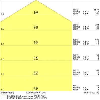 De lichtopbrengst (Lumen), geeft weer hoe krachtig het uitgestraalde licht is. Dit is belangrijk om te weten om de juiste sfeer te creëren. 0 tot 400 Lumen is bij uitstek geschikt voor accent- of sfeerverlichting. Een hoger aantal Lumen is, afhankelijk van de grootte van de ruimte, beter geschikt als ondersteunende- of basisverlichting. Heb je plafonds hoger dan 4 meter, dan is een lichtopbrengst van minimaal 8000lm aan te raden indien heldere verliching gewenst is (vb. in werkomgevingen).