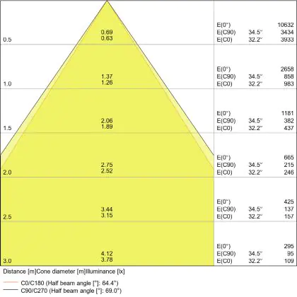 De lichtopbrengst (Lumen), geeft weer hoe krachtig het uitgestraalde licht is. Dit is belangrijk om te weten om de juiste sfeer te creëren. 0 tot 400 Lumen is bij uitstek geschikt voor accent- of sfeerverlichting. Een hoger aantal Lumen is, afhankelijk van de grootte van de ruimte, beter geschikt als ondersteunende- of basisverlichting. Heb je plafonds hoger dan 4 meter, dan is een lichtopbrengst van minimaal 8000lm aan te raden indien heldere verliching gewenst is (vb. in werkomgevingen).