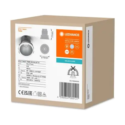 | Fabrikantnaam | LED SPOT RECESS TWIST PRO 70mm 5W 4000K White Silver | |