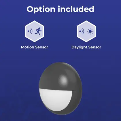 Beschrijving Noxion LED Bulkhead Pro V2 Wit 12/16/20W 2400lm - 830-840-865 CCT | 325mm - IP65 - Bewegings- en Lichtsensor + Ooglid Ring Zwart