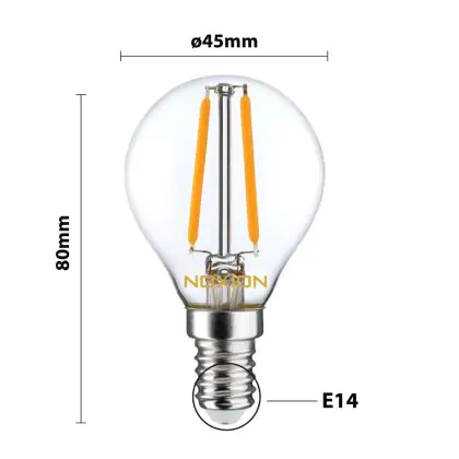 | Fabrikantnaam | Noxion Lucent Filament LED Lustre P45 E14 220-240V 2.5W 250LM CRI80 2700K NON-DIM (25W eqv.) | |