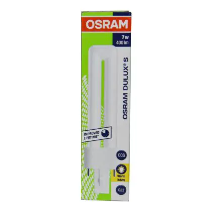 De Osram Dulux S is een korte en compacte lamp met steeklampvoet en enkelvoudig-gedraaide buizen. Ze hebben een G23-basis/voet met twee insteekvoetjes en twee-pins plug-in.
