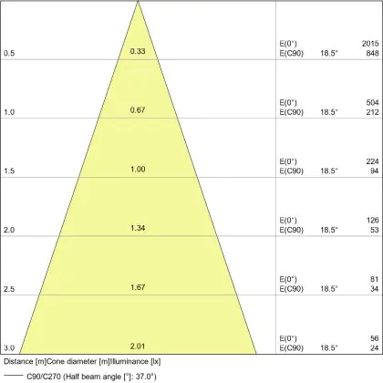 De gradenbundel geeft informatie over hoe breed het licht wordt uitgestraald. Dit zit tussen de 0 en 360 graden (D). Hoe kleiner de hoek, hoe specifieker de lichtbundel is. Over het algemeen is een smalle gradenbundel perfect voor sfeer- of accentverlichting, terwijl een brede gradenbundel ideaal is om grote oppervlaktes te verlichten.