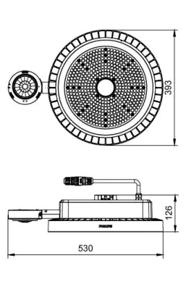 Beschrijving Philips LED Highbay BY122X Coreline G5 Aluminium Grijs 203W 30000lm 85x85D - 840 Koel Wit | IP65 - Interact Dimbaar