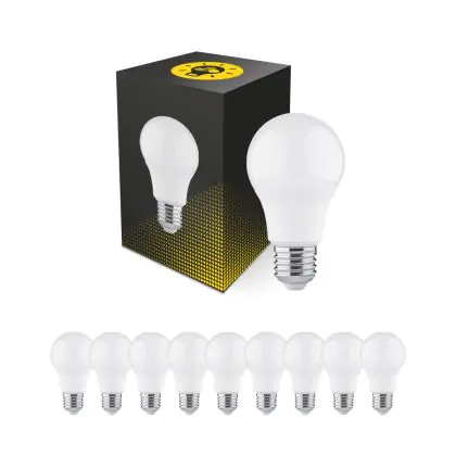 | Fabrikantnaam | Multipack 10x White label LED bulb SMD A60 E27 220-240V 4.9W 470LM CRI80 3000K ND (40W eqv.) | |