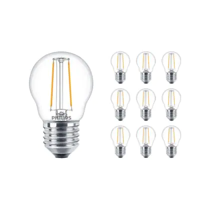 Beschrijving Voordeelpak 10x Philips Corepro LED Lustre E27 Kogel Filament Helder 2W 250lm - 827 Zeer Warm Wit | Vervangt 25W